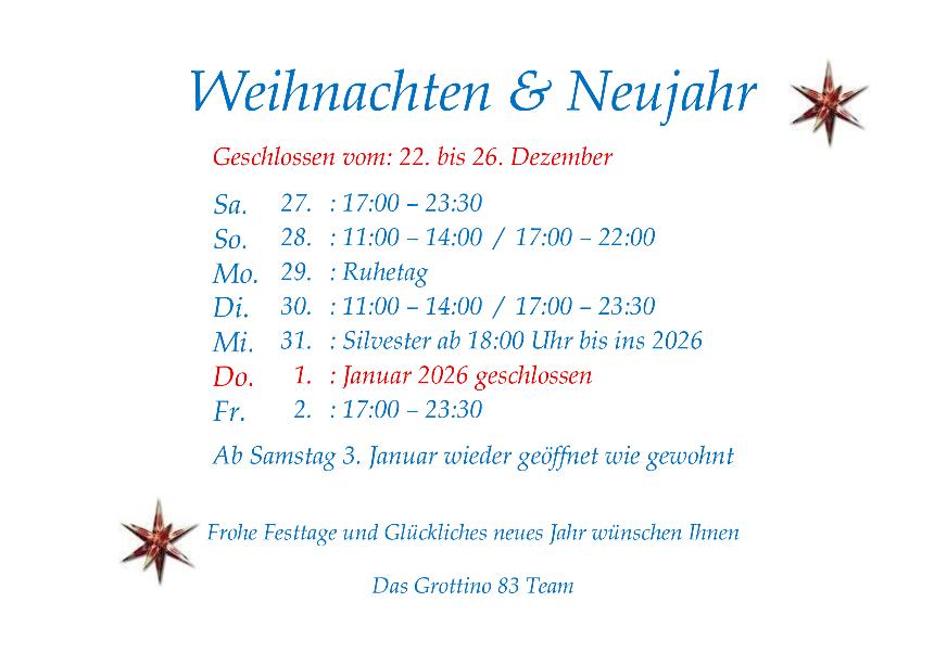 Dienstag - Freitag 11:00 - 14:00 / 17:00 - 23:00
